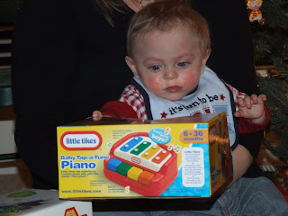 Preston had a great Christmas! He wasn't too sure about Santa but he didn't cry. Santa always comes to Grandma and Grandpa Clarks house on Christmas Eve! Grandma and Grandpa Wang gave Preston his first $50 bill!! He wasn't really sure what to do with it so like everything else....it went in the mouth!